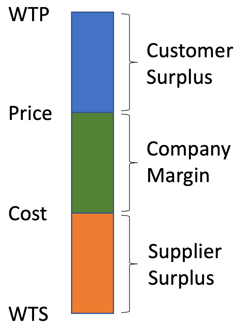 Instead, in seeking to improve financial performance, you should first figure out how increase WTP--what will make your product more valuable to your customers? If you can do this, then you can increase your Company Margin while maintaining or even increasing the Customer Surplus.