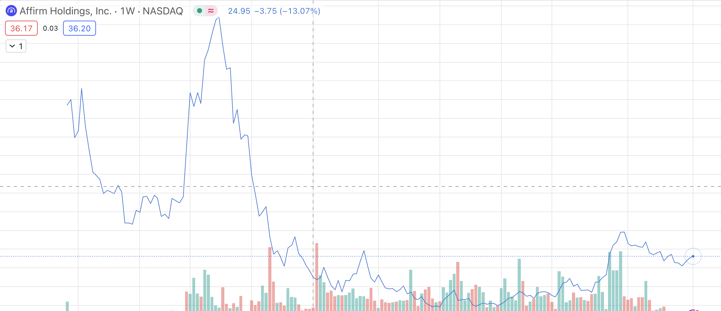 Despite markets hitting all time highs, if you're not one of the super cash-rich tech giants, your equity price hasn't recovered very well. Let's use Affirm as a stand-in for so many tech companies that crashed in 2022 and barely recovered: